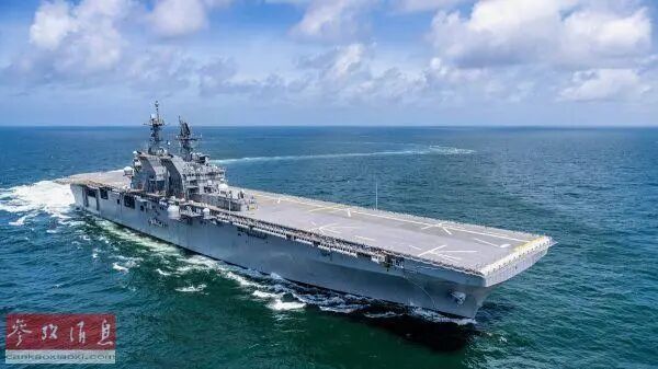 公开资料显示,“的黎波里”号(LHA-7)是“美国”级两栖攻击舰的二号舰,2020年7月加入美国海军,有“准航母”之称。该舰舰长257米、宽32.3米,满载排水量约为4.5万吨,具备部署F-35B战机的能力。