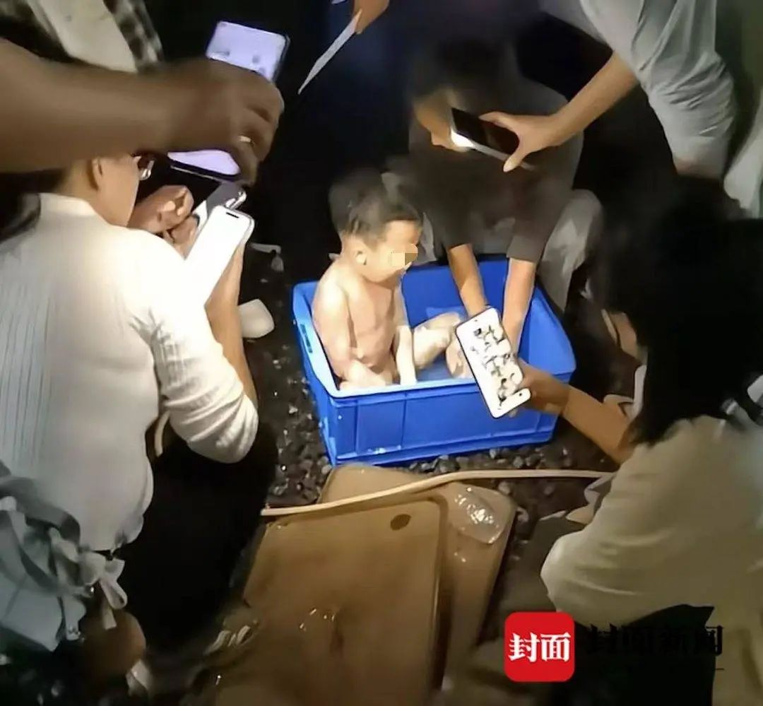 事发后,现场人员迅速为孩子降温