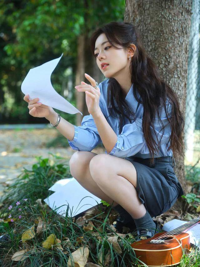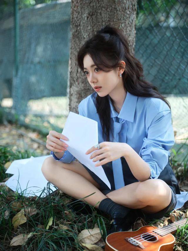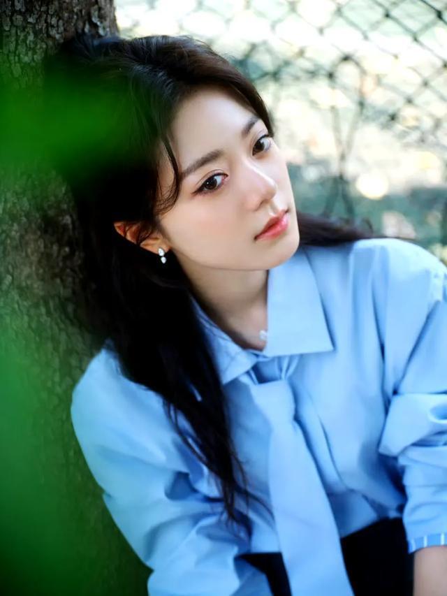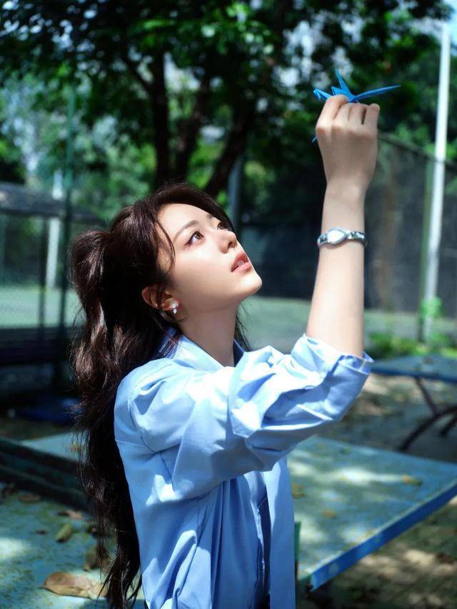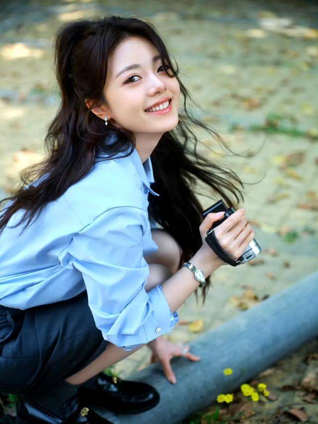先看她的上衣,一件蓝色衬衣。蓝色常被赋予忧郁与伤感的意味,这也是不少文艺青年自带的气质,一种对世界认知的深沉。尽管赵今麦未刻意呈现深沉,但文艺气息已自然流露。